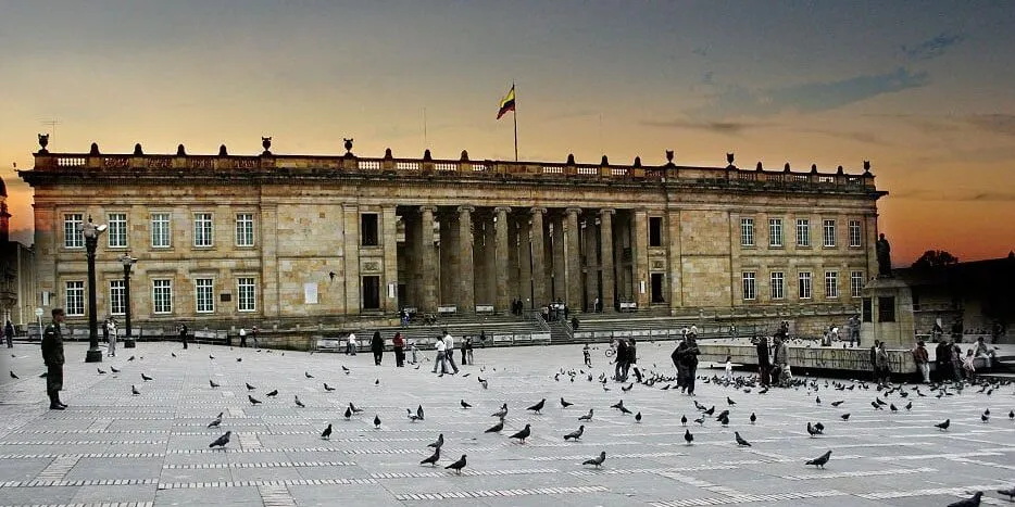 Start at Plaza Bolívar, the historic heart of the city. Government buildings surround the square. The Cathedral Basilica of Bogotá dominates one side, its neoclassical façade watching over the plaza like it has since the mid-1800s. The Capitolio Nacional, where Colombia's Congress meets, sits across from it. The presidential palace, Casa de Nariño, is a few blocks away, heavily guarded and impossible to miss.